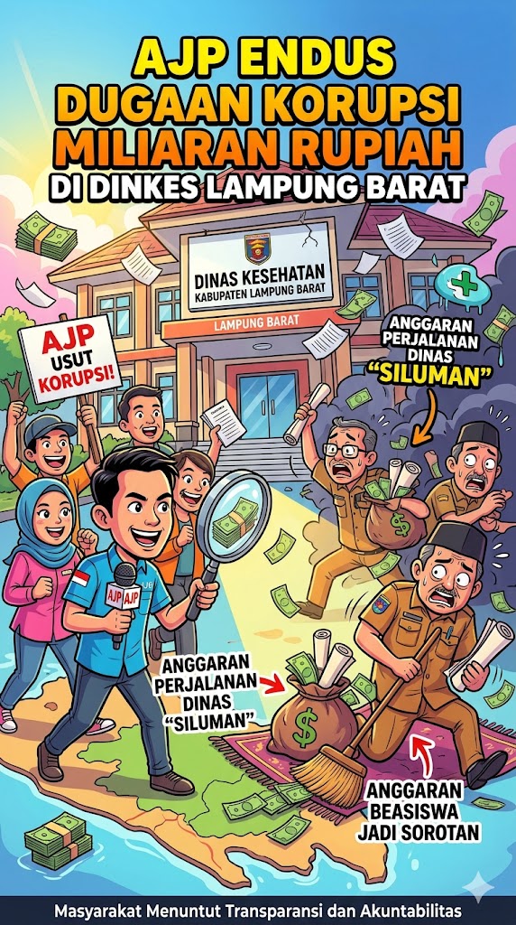 Aroma busuk dugaan korupsi kembali menyeruak dari tubuh birokrasi. Kali ini, sorotan tajam datang dari Dewan Pimpinan Cabang (DPC) Aliansi Jurnalis Persada (AJP) Kabupaten Lampung Barat yang membongkar temuan awal terkait dugaan penyimpangan anggaran di Dinas Kesehatan (Dinkes) Lampung Barat Tahun Anggaran 2025.
