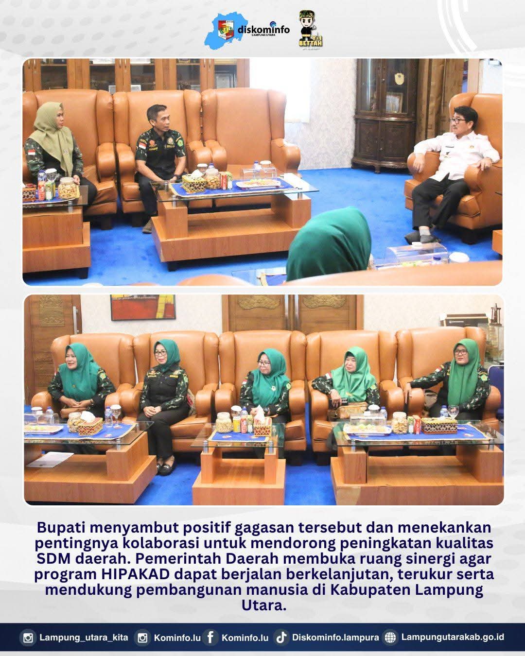 Audiensi ini diharapkan menjadi langkah awal terbangunnya kerja sama konkret antara HIPAKAD dan Pemerintah Kabupaten Lampung Utara dalam mendukung visi pembangunan daerah yang berfokus pada penguatan SDM dan ketahanan sosial masyarakat. (mediaviral.co)