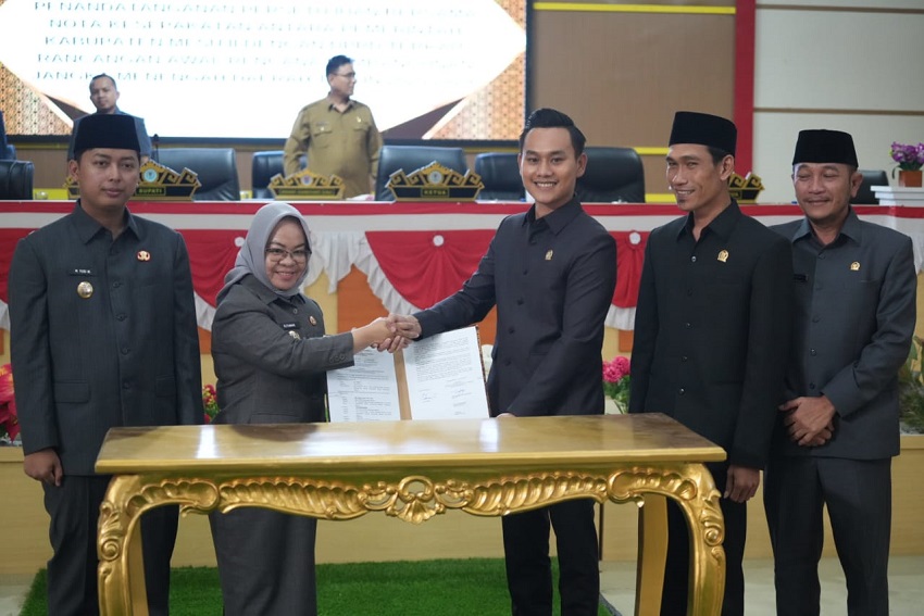 Bupati Mesuji, Elfianah menghadiri Rapat Paripurna Dalam Rangka Persetujuan Bersama Nota Kesepakatan Rancangan Awal Rencana Pembangunan Jangka Menengah Daerah (RPJMD) Tahun 2025-2029. Acara ini berlangsung pada Senin, (14 April 2025). di Kantor DPRD setempat, Desa Wiralaga Mulya, Kecamatan Mesuji.