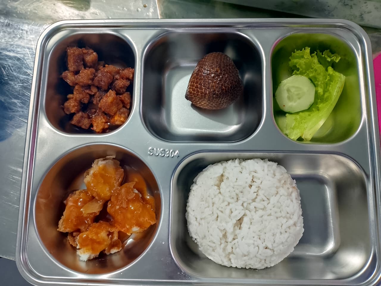 Senin–Kamis: tanpa susu, menggunakan sayur senilai ± Rp1.000 → total bahan ± Rp5.500 per porsi.