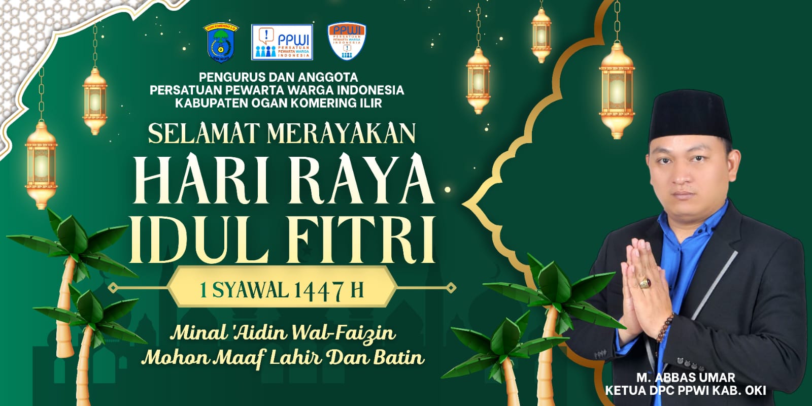 Dengan semakin dekatnya Hari Raya Idul Fitri 1447 Hijriah, Ketua Persatuan Pewarta Warga Indonesia (PPWI) Kabupaten Ogan Komering Ilir (OKI), M. Abbas Umar, menyampaikan ucapan selamat kepada seluruh umat Islam di wilayah OKI maupun seluruh Indonesia.