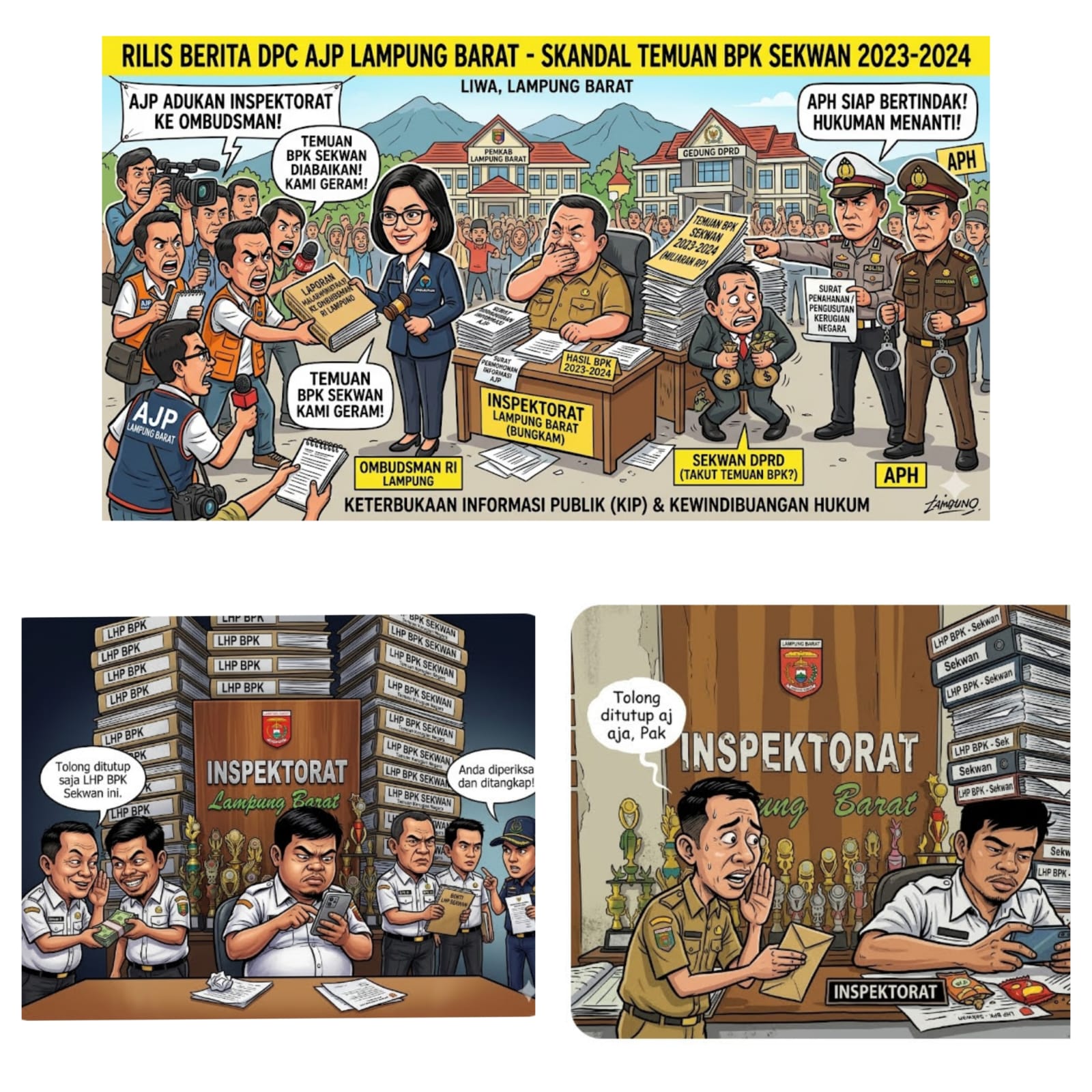 Sikap tertutup Inspektorat Kabupaten Lampung Barat terkait tindak lanjut temuan Badan Pemeriksa Keuangan (BPK) RI di Sekretariat DPRD (Sekwan) tahun anggaran 2023–2024 menuai sorotan. Dewan Pimpinan Cabang Aliansi Jurnalis Persada (DPC AJP) Lampung Barat menyatakan kekecewaan atas tidak adanya respons resmi terhadap permohonan informasi yang telah disampaikan.