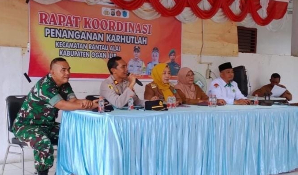 Menghadapi datangnya musim kemarau, Polsek Rantau Alai menggelar Rapat Koordinasi (Rakor) lintas sektor dalam rangka pencegahan dan penanganan kebakaran hutan, kebun, dan lahan (Karhutbunlah) di wilayah hukumnya. Kegiatan ini berlangsung di Aula Kantor Camat Rantau Alai. Senin (21/7/2025).