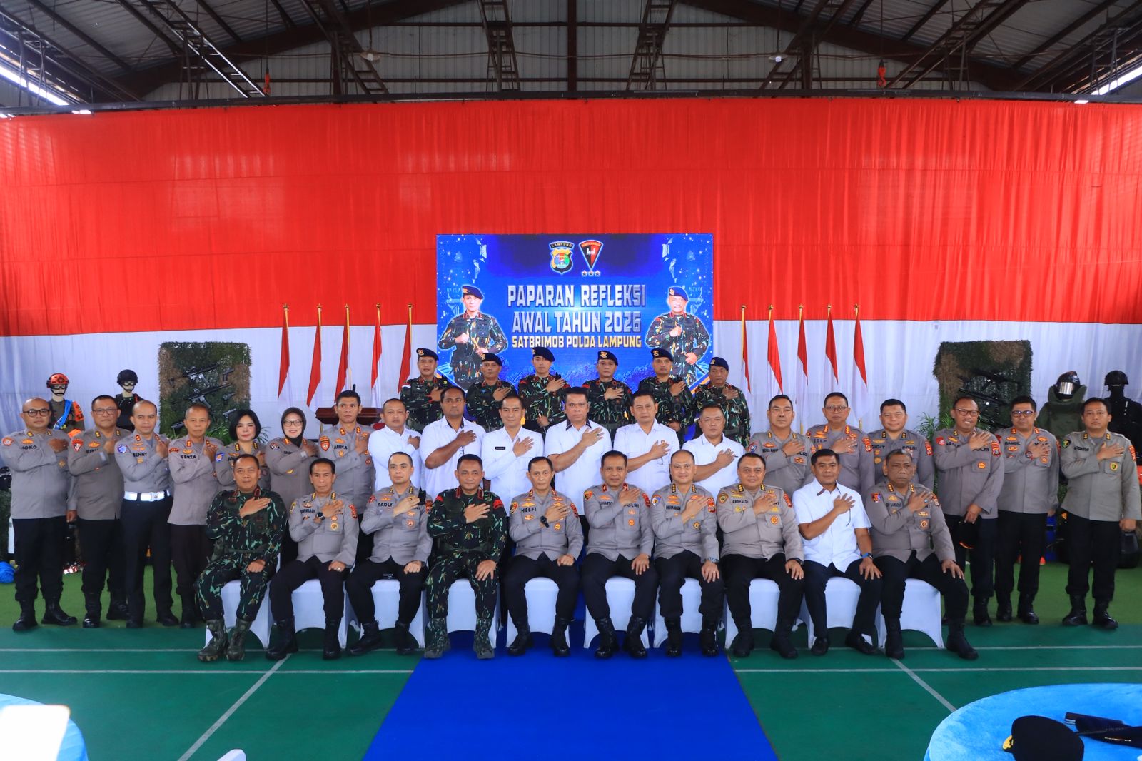Kapolda Lampung Irjen Pol. Helfi Assegaf memimpin sekaligus membuka kegiatan Refleksi Awal Tahun 2026 Satuan Brimob Polda Lampung, yang digelar di Makosat Brimob Polda Lampung, Rabu (21/1/2026).