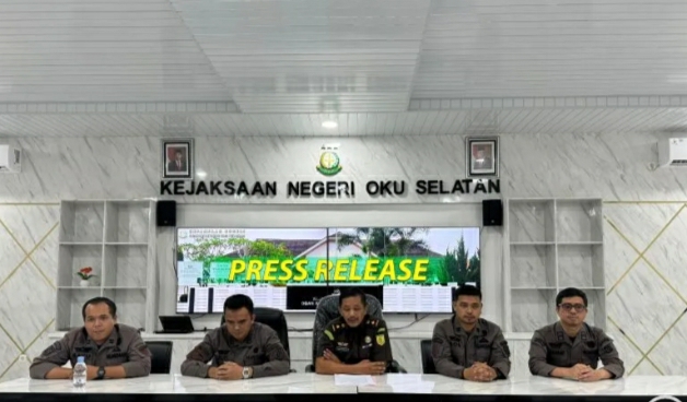Kejari OKU Selatan menggelar jumpa pers penetapan tersangka kasus dugaan korupsi di Dispora setempat, Kamis. (Antara/Kejari OKU Selatan) Muaradua (ANTARA) – Kejaksaan Negeri (Kejari) Kabupaten Ogan Komering Ulu (OKU) Selatan, Sumatera Selatan, menetapkan Kepala Dinas Kepemudaan dan Olahraga (Dispora) OKU Selatan sebagai tersangka kasus dugaan korupsi di dinas setempat.
