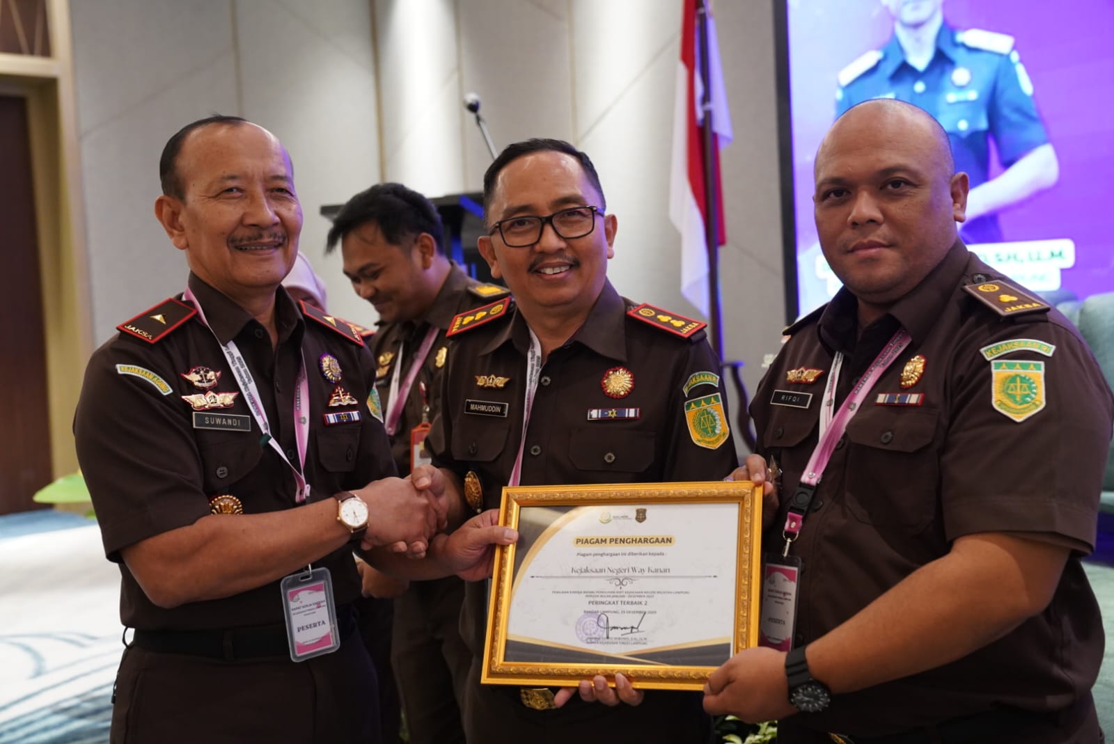 Kejaksaan Negeri (Kejari) Way Kanan berhasil meraih penghargaan peringkat kedua Pemulihan Aset dan Pengelolaan Barang Bukti (PAPBB) dalam Rapat Kerja Daerah Kejaksaan Tinggi Lampung Tahun 2025. Kegiatan tersebut digelar di Hotel Holiday Inn, Bandar Lampung, Senin (15/12/2025).