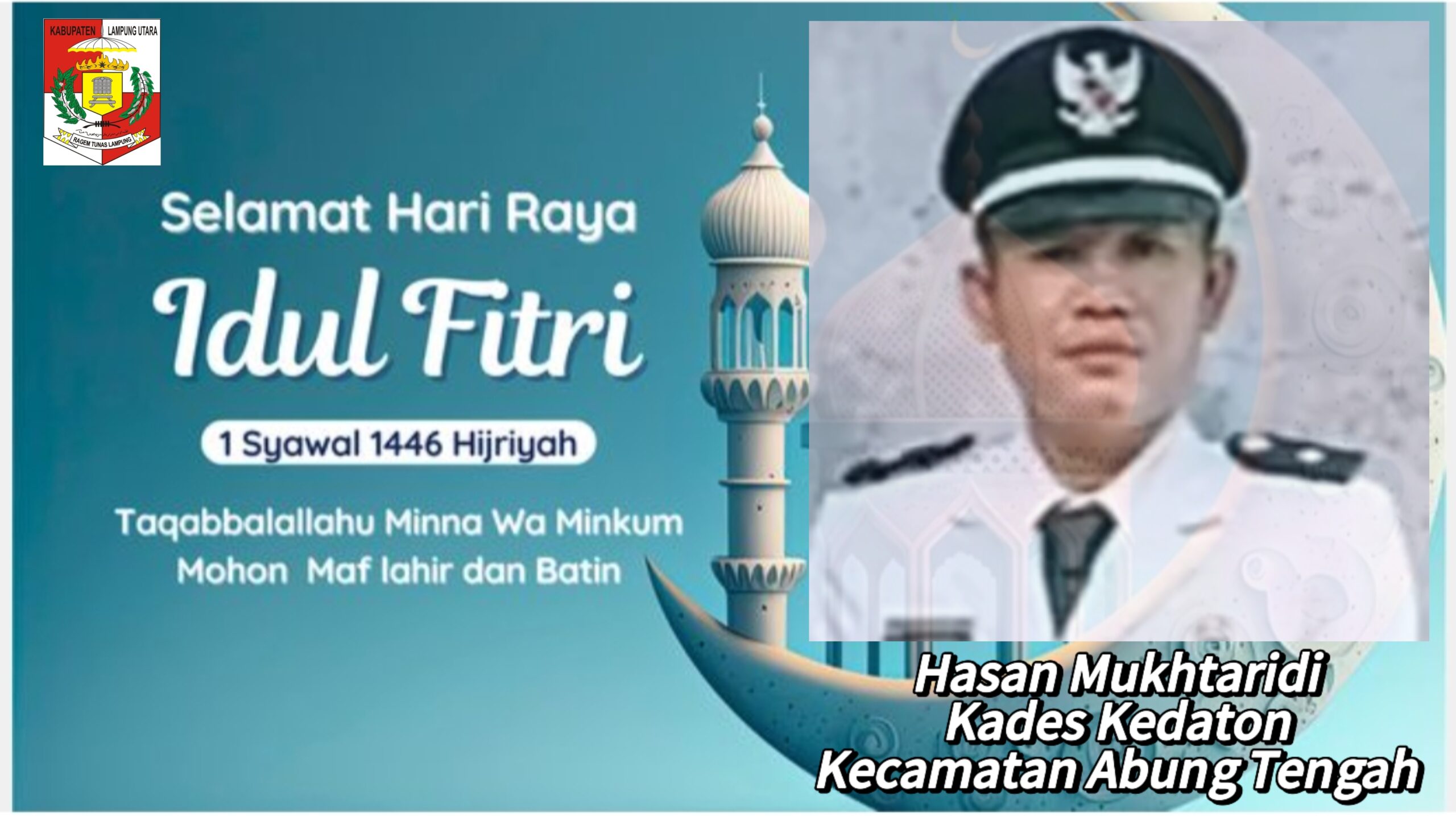 Kepala Desa Kedaton Kecamatan Abung Tengah Hasan Mukhtaridi Mengucapkan, Selamat Hari Raya Idul Fitri 1446 H