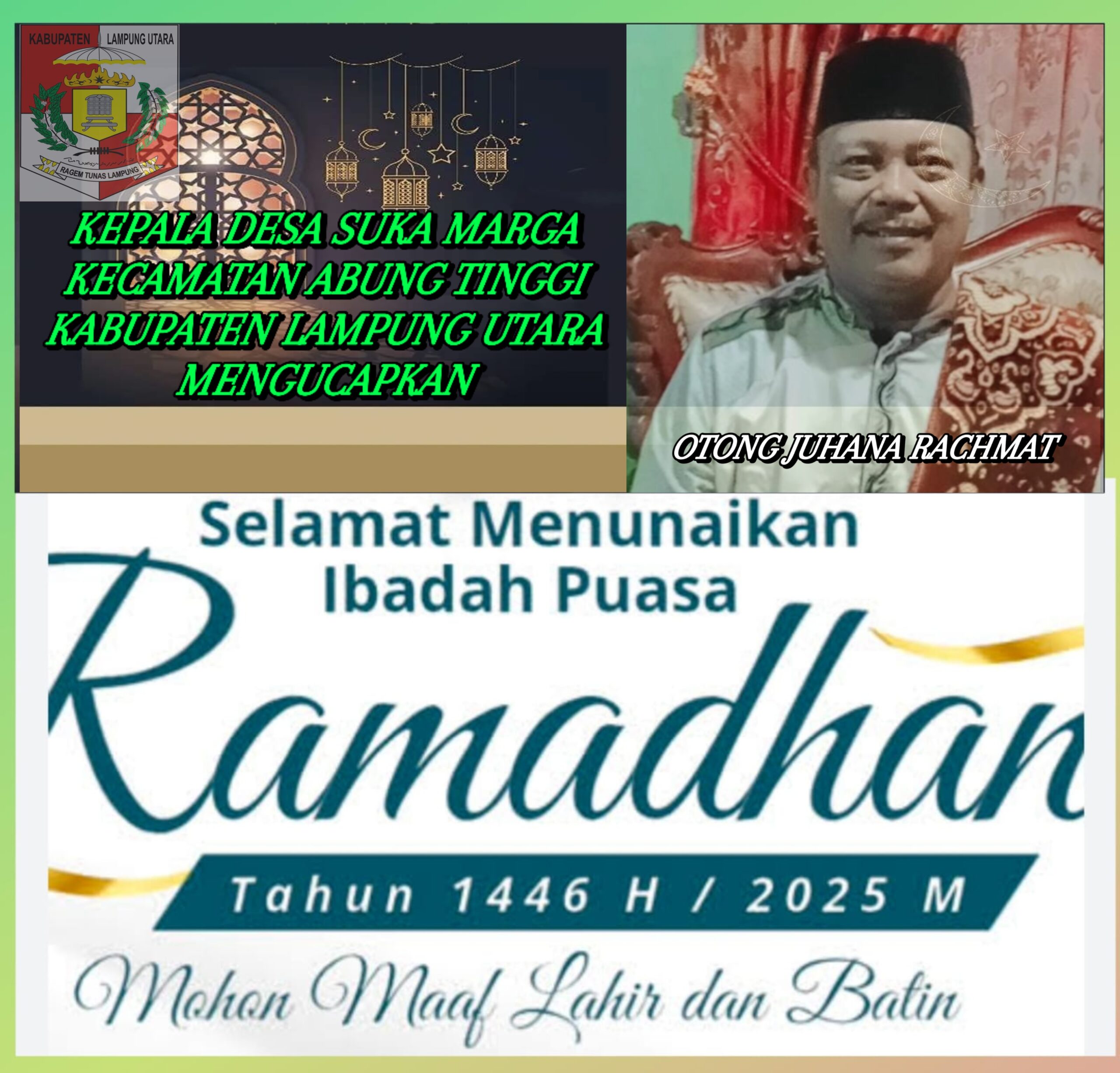 Kepala Desa Suka Marga Kecamatan Abung Tinggi Otong Juhana Rachmat Mengucapkan, Selamat Menunaikan Ibadah Puasa Ramadhan 1446 H