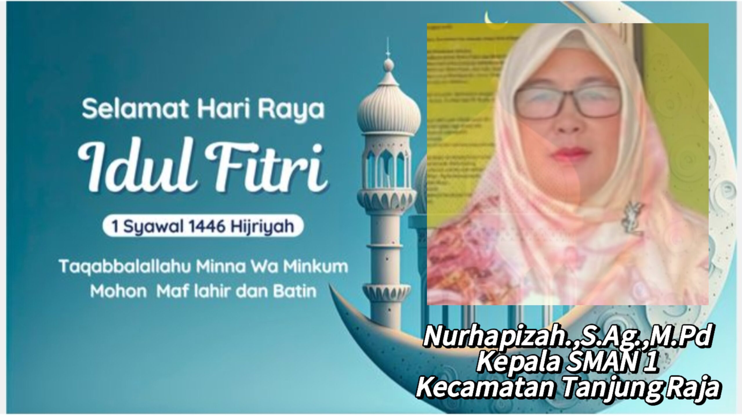 Kepala SMAN 1 Kecamatan Tanjung Raja Kabupaten Lampung Utara Nurhapizah.,S.Ag.,M.Pd mengucapkan, Selamat Haru Raya Idul Fitri 1446 Hijriah bagi umat muslim di Indonesia, hari Raya Idul Fitri adalah hari yang dinanti-nantikan dan dirindukan dan hari kemenangan bagi umat muslim.