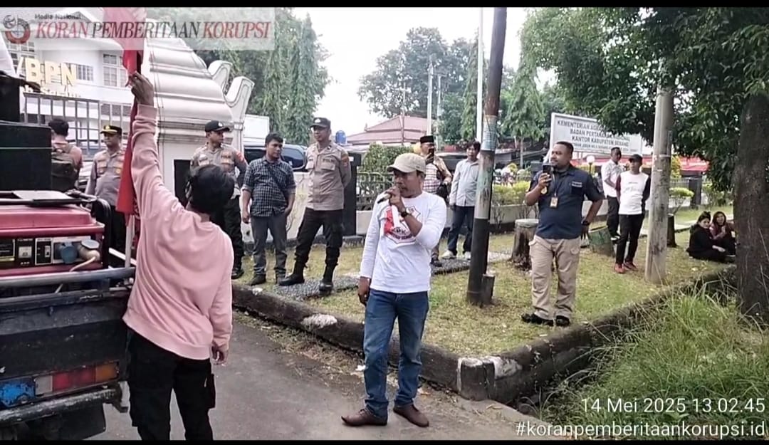 Lembaga Swadaya Masyarakat (LSM) Komunitas Pemantau Korupsi (KPK) Nusantara perwakilan Banten menggeruduk kantor Badan Pertanahan Nasional (BPN) kabupaten Serang di jalan Letnan Jidun Nomor 5 Lontar Baru Kota Serang provinsi Banten, Rabu (14/05/2025)