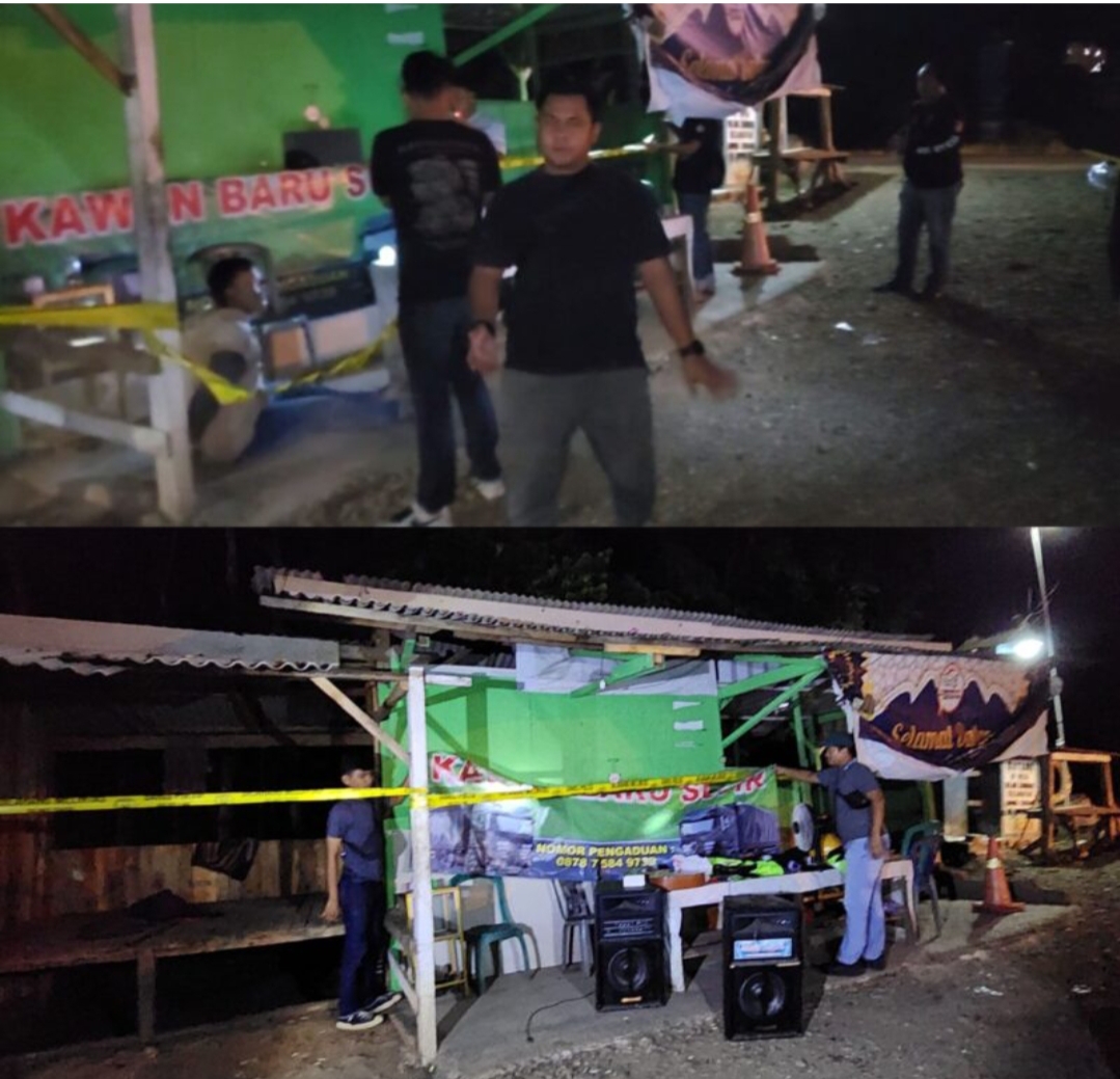 Dari lokasi petugas mengamankan barang bukti Lembaran Buku Harian Pos Kontrol PT. KBS, 1 buah Benner PT. KBS, Stiker KAWAN BARU SUPIR , 1 buah rompi berwarna orange PT. KBS, 4 buah rompi berwarna hijau PT. KBS, 2 buah apil, 2 buah Kun Kerucut, 1 buah pena, 1 buah streples, uang tunai sebesar Rp.100.000, 1 buah Tas berwarna hitam.