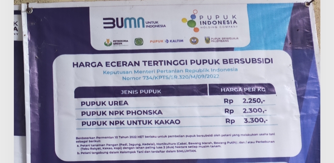 Berdasarkan laporan petani dan ketua kelompok tani (poktan), harga pupuk bersubsidi di beberapa kios mencapai Rp280.000 hingga Rp320.000 per setel (Urea dan Phonska). Padahal, harga resmi yang ditetapkan pemerintah hanya Rp112.500 per sak untuk Urea dan Rp115.000 per sak untuk NPK Phonska. atau Rp 2.250 per kilogram untuk UREA, serta Rp115.000 per sak atau Rp 2.300 per kilogram untuk NPK PHONSKA, untuk Kakao Rp 3.300 /kg, dan Pupuk Organik Rp 800/kg. Kenaikan harga ini dianggap memberatkan petani kecil yang sangat bergantung pada subsidi pemerintah.