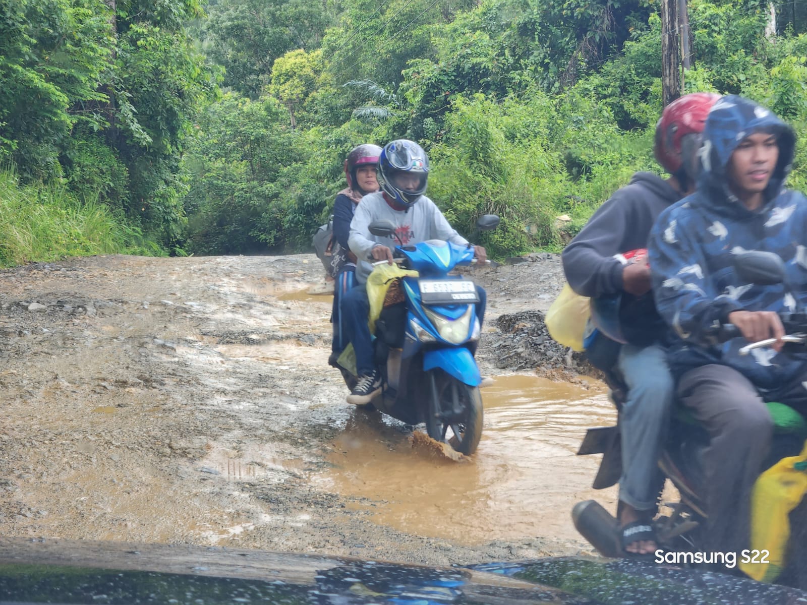 “Sejak zaman Orba sepertinya masih sama waktu sekarang saya lihat. Hancur, berlobang, banyak genangan air dan Terjal berbatu sehingga mengganggu laju kendaraan R2 dan sulit dilalui R4, ya… hanya sedikit lebih baik aja yang dulunya jalan tanah sekarang ada batunya” imbuhnya.