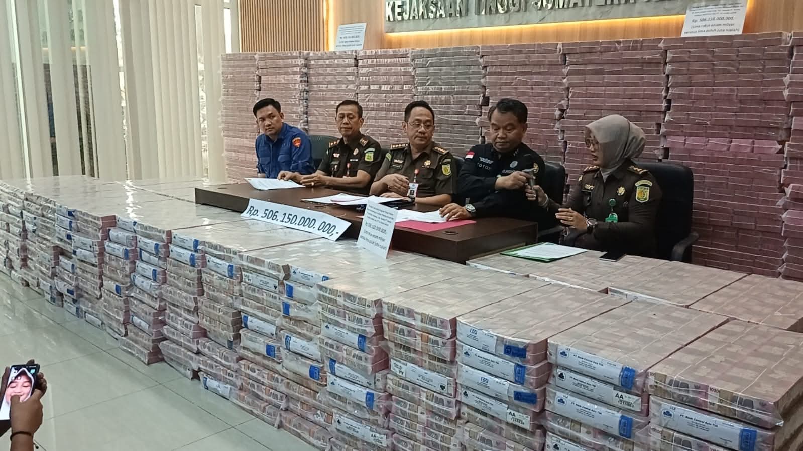 Kejaksaan Tinggi (Kejati) Provinsi Sumatera Selatan menyita barang bukti berupa uang tunai senilai Rp506,15 miliar terkait perkara dugaan tindak pidana korupsi pemberian fasilitas kredit dari Bank BRI kepada PT BSS dan PT SAL.