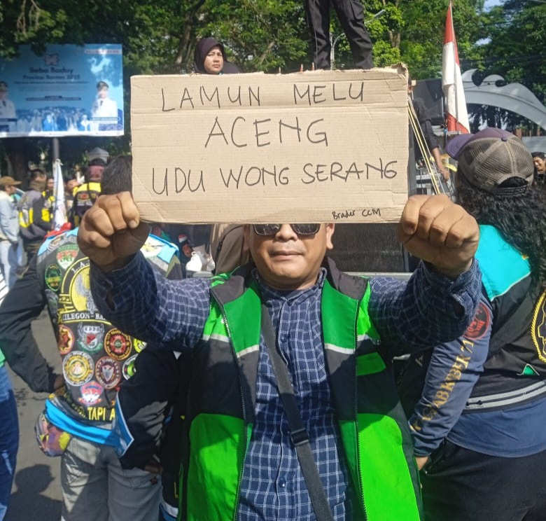 “Situasi para pengemudi ojol saat ini semakin memburuk. Kami bekerja lebih dari delapan jam sehari tanpa kepastian penghasilan dan selalu berada di bawah ancaman sanksi sepihak dari perusahaan aplikasi,” kata Ahmad, salah satu pengemudi ojol asal Kota Serang.