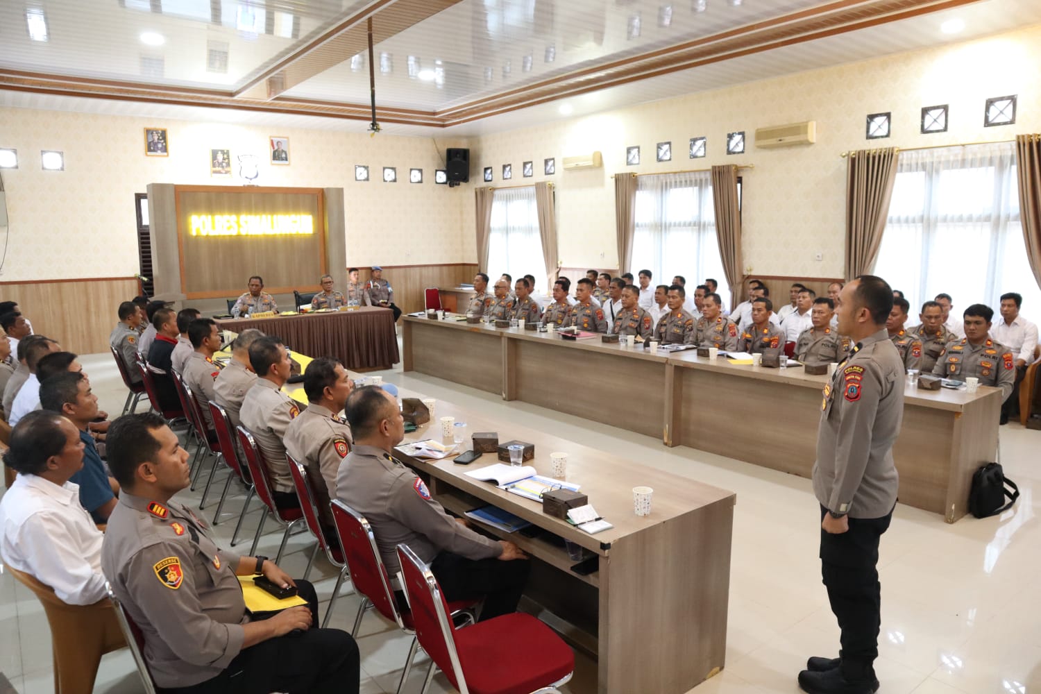 ” Kegiatan ini dihadiri oleh jajaran pimpinan strategis, termasuk Kabag Ops Polres Simalungun Kompol M. Manik, SH, MH, Kabag SDM Kompol Marnaek Sahala Ritonga, SH, dan Kabag Log Kompol Pandapotan Butar-butar, SH. Kehadiran para kabag ini penting untuk memberikan perspektif lintas fungsi dalam analisis situasi kamtibmas.