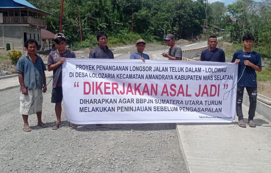 Proyek penanganan longsor Jalan Nasional Wilayah III Sumatera Utara pada ruas Telukdalam–Lolowau, tepatnya di Desa Lolozaria, Kecamatan Amandraya, Kabupaten Nias Selatan, menuai sorotan tajam. Warga setempat menduga pekerjaan proyek bernilai miliaran rupiah tersebut dikerjakan asal jadi dan tidak sesuai perencanaan.