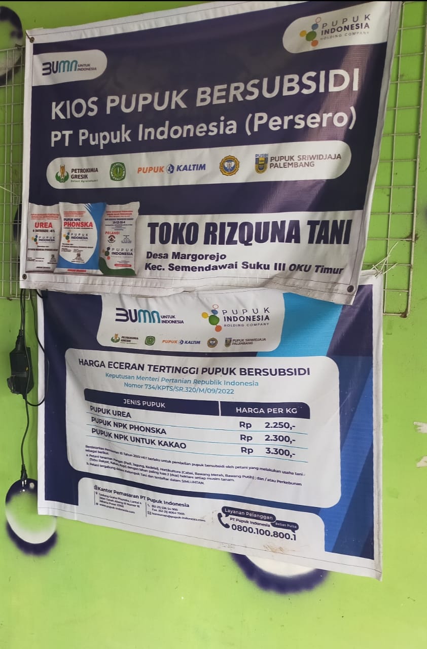 Ketika di tanyakan pupuk darimana,? Bapak Sugio mengatakan ” Kami nebus melalui gapoktan di Kios atauToko RISQUNA TANI di Desa Margo Rejo Kec.Semendawai Suku III dengan Harga RP.280 Ribu per Setel,sedangkan ke anggota saya kasih harga Rp.310 ribu lebihnya untuk kas,”