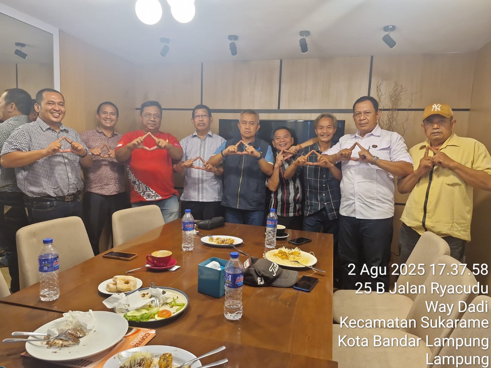 Ketua Dewan Provinsi Partai Gema Bangsa, Jholy Sanggam (kiri), bersama para Ketua DPD se-Lampung saat rapat konsolidasi di Jabe Caffe, Bandar Lampung, Sabtu (2/8/2025).
