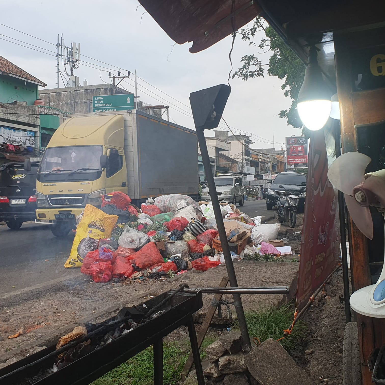 Tumpukan sampah terlihat menggunung di kawasan Pasar dan Terminal Bukit Kemuning, Lampung Utara. Kondisi ini sudah berlangsung beberapa waktu terakhir dan menimbulkan bau tidak sedap yang mengganggu aktivitas pedagang maupun masyarakat sekitar.