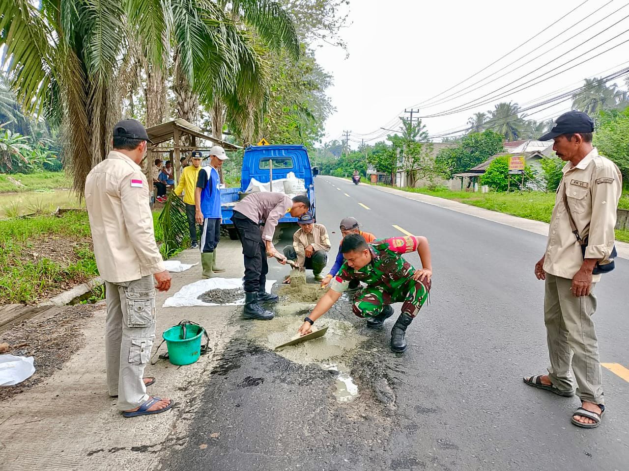 Dengan perlengkapan sederhana namun semangat yang tinggi, mereka bersama-sama memperbaiki sejumlah titik lubang berbahaya yang selama ini dikeluhkan warga, khususnya pengguna jalan.