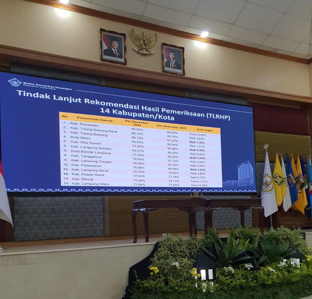 Bukan sekadar hadir, Way Kanan langsung “menggebrak meja” dengan mencatatkan kenaikan tertinggi penyelesaian Tindak Lanjut Hasil Pemeriksaan (TLLHP) se-Provinsi Lampung, mencapai 9,40 persen. Angka ini melampaui Kabupaten Tulang Bawang (7,30 persen) dan Kota Bandar Lampung (5,58 persen) yang harus puas berada di bawahnya.